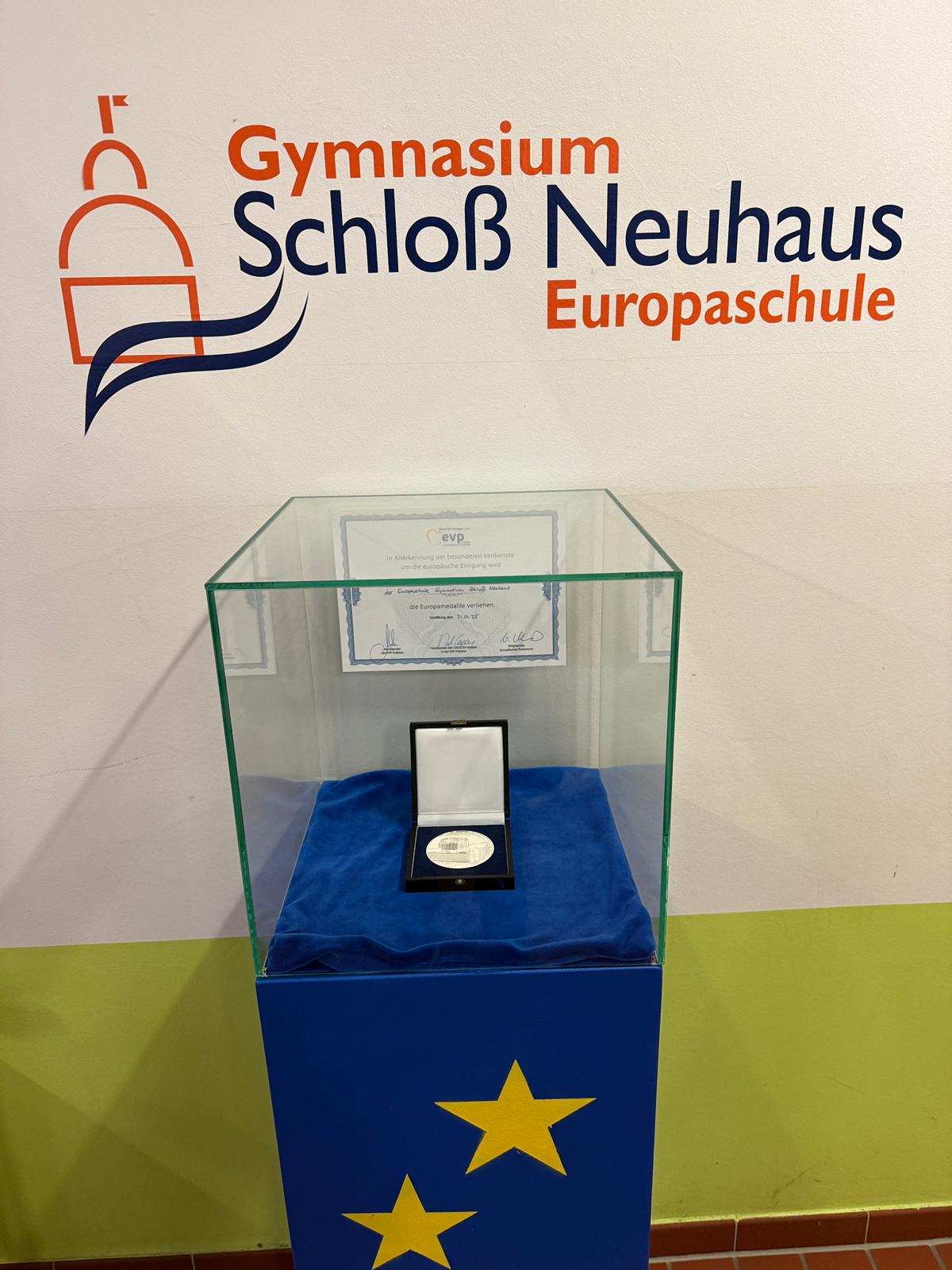 Die Europamedaille im Gymnasium Schloß Neuhaus